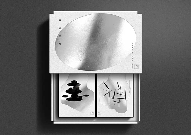 漢字具有的圖形化即圖像化特質(zhì),拓寬了漢字在茶葉包裝設(shè)計中的應(yīng)用表現(xiàn)方法。與一般插畫形式的圖形不同,漢字的圖形會意在于字體的圖像化變形,尤以筆畫部首的藝術(shù)表現(xiàn)為主。成都包裝廠在進行茶葉包裝設(shè)計時,要對產(chǎn)品品牌文化有一個深刻了解,找出具有品牌漢字本質(zhì)特征的意象圖式,將其與漢字進行結(jié)合,形成字畫同體的包裝意境。在蟬隱齋的白茶禮盒包裝中,設(shè)計師選取了“竹、石”兩種意象圖示與漢字結(jié)合,讓整體包裝畫面呈現(xiàn)出“曲徑通幽處,禪房花木深”的意境感。品牌的中“蟬”字音同“禪”,給人一種淡泊寧靜的白描感,這種感覺與玉竹所蘊含的禪修寓意所耦合,竹葉與筆畫部首的結(jié)合更是表現(xiàn)了禪茶一味的氛圍感,圓石寓意的溫潤與自然樸琢,也傳達茶本身的內(nèi)涵與產(chǎn)品的特質(zhì),圓石形態(tài)的字體形式亦表現(xiàn)了中國漢字文化的包容并蓄。